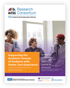 This brief looks at the Multi-Tiered System of Support (MTSS) and identifies effective strategies that address the needs of students with foster care experience (FCE). It details the findings of a case study of Sweetwater Union High School District, based in Chula Vista, California, and its practices, programs, and policies that promote the academic well-being of students with FCE. Conjointly, drawing from interviews with California high school graduates with FCE, the brief includes students’ recommendations for schools.