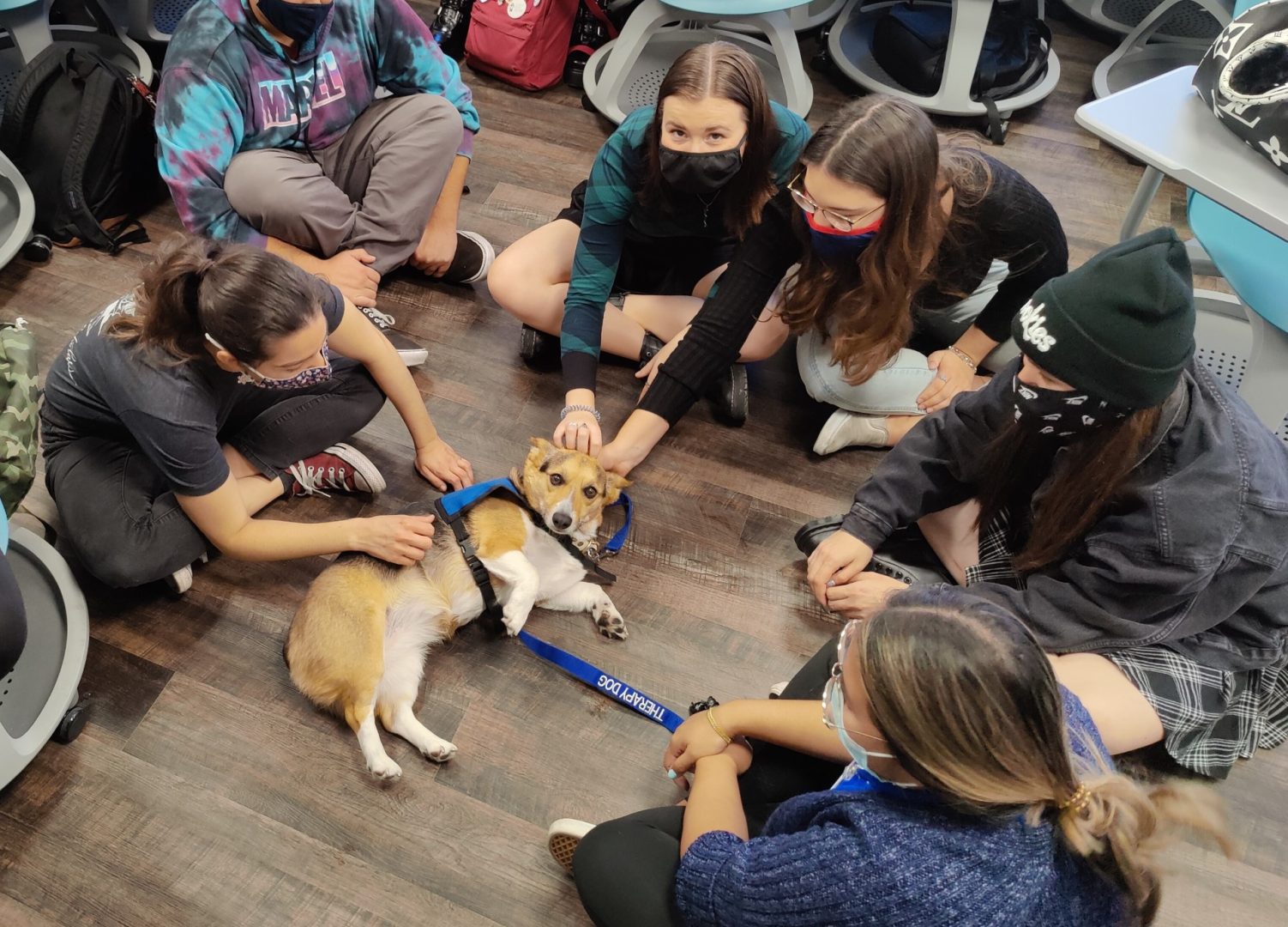 SDSU Guardian Scholars spend time with emotional support dogs (Image credit: SDSU Guardian Scholars Program)