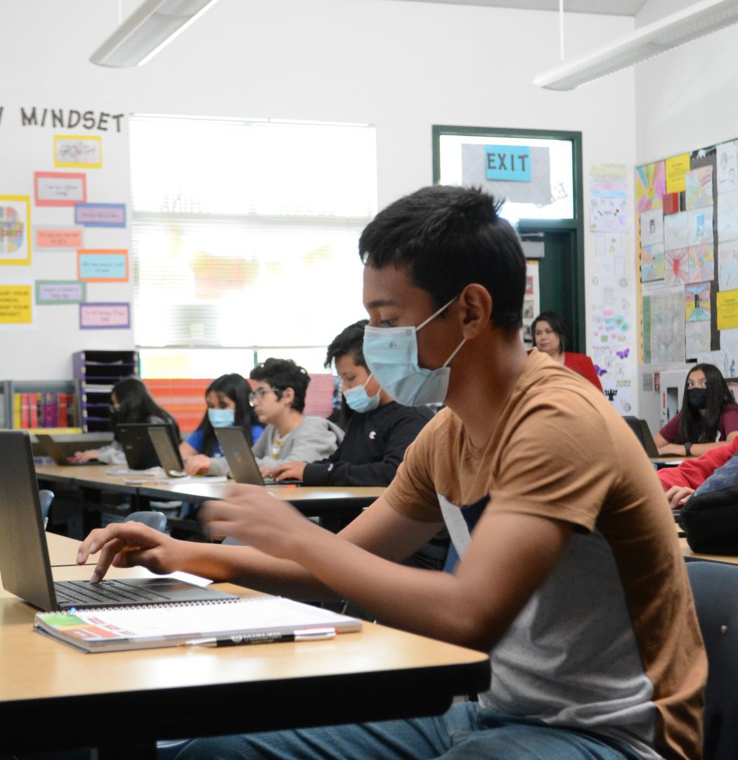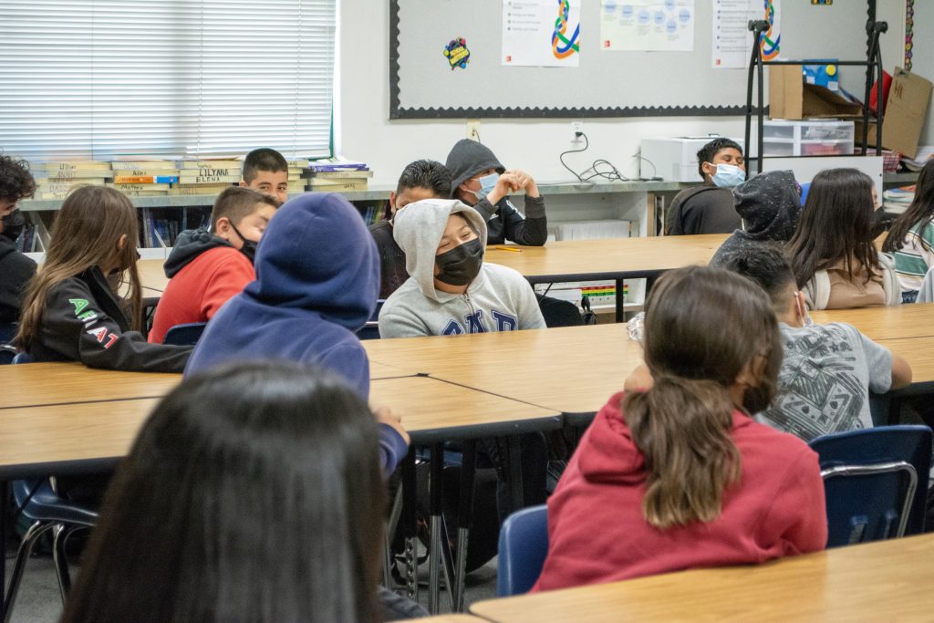 Students in classroom, Livingston Middle School, Livingston, CA.